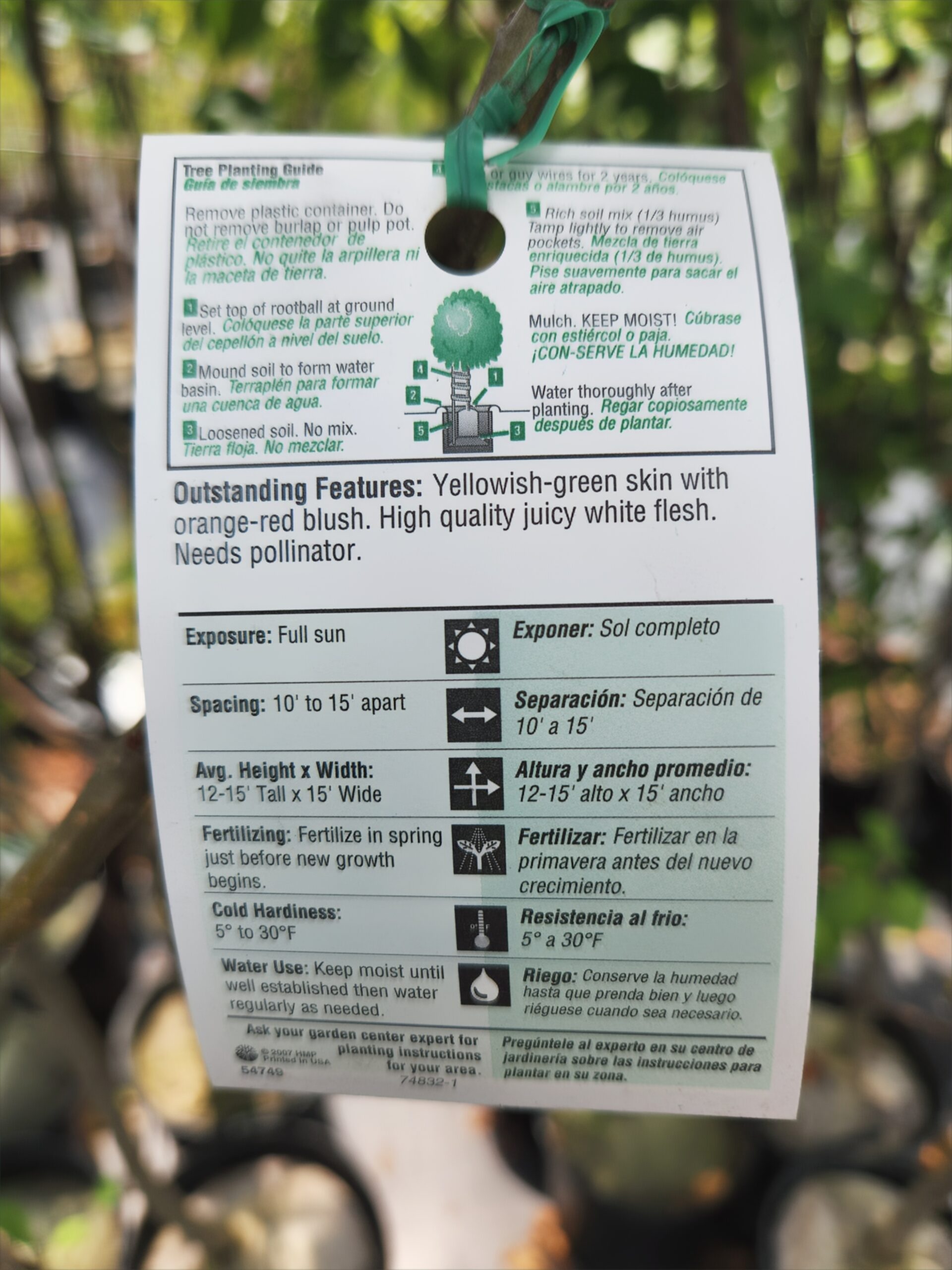 Plant in full to partial sun and well-drained soil. Low chill hours required. The Fuji is not self-pollinating and will require cross-pollination. It is essential to plant another variety of apple tree to achieve fruiting. Average height 15′ – 20′ and width 15′ – 20′. Required Chill Hours: 400-500. USDA hardiness zone 4 – 8.